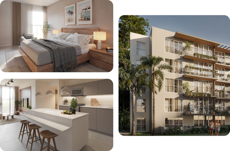 Lateral: mayor independencia, amplitud y privacidad. Disponible en opciones de 2 o 3 habitaciones, 2 baños completos, walk-in closet y 1 espacio de parqueo.